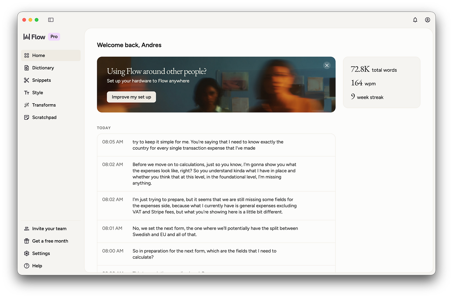 I think much faster when I’m speaking than when I’m typing. So Wispr Flow essentially removed the bottleneck between my brain and everything else in my stack. I use it to brainstorm out loud, give instructions to Claude, write Slack messages, and dump half-formed thoughts I clean up later.
